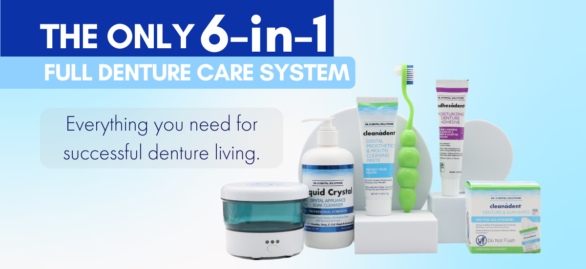 Finally, everything you need to clean, protect, and live confidently with dentures—at home or on the go.
