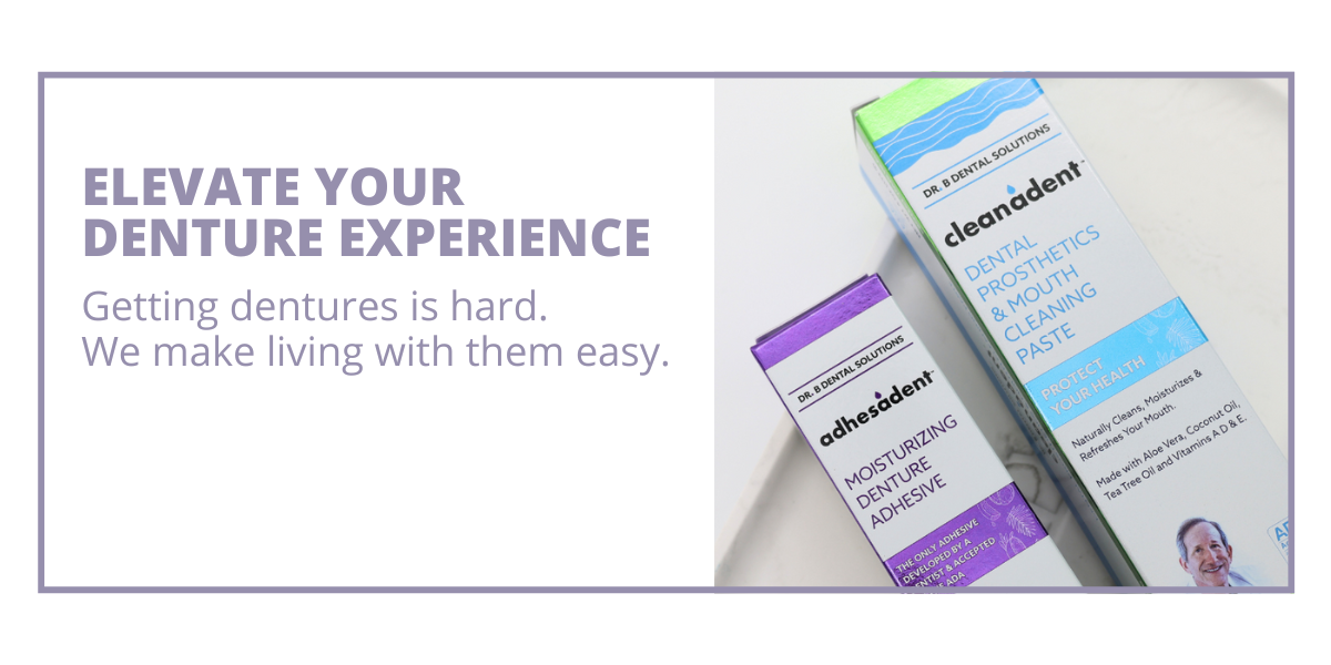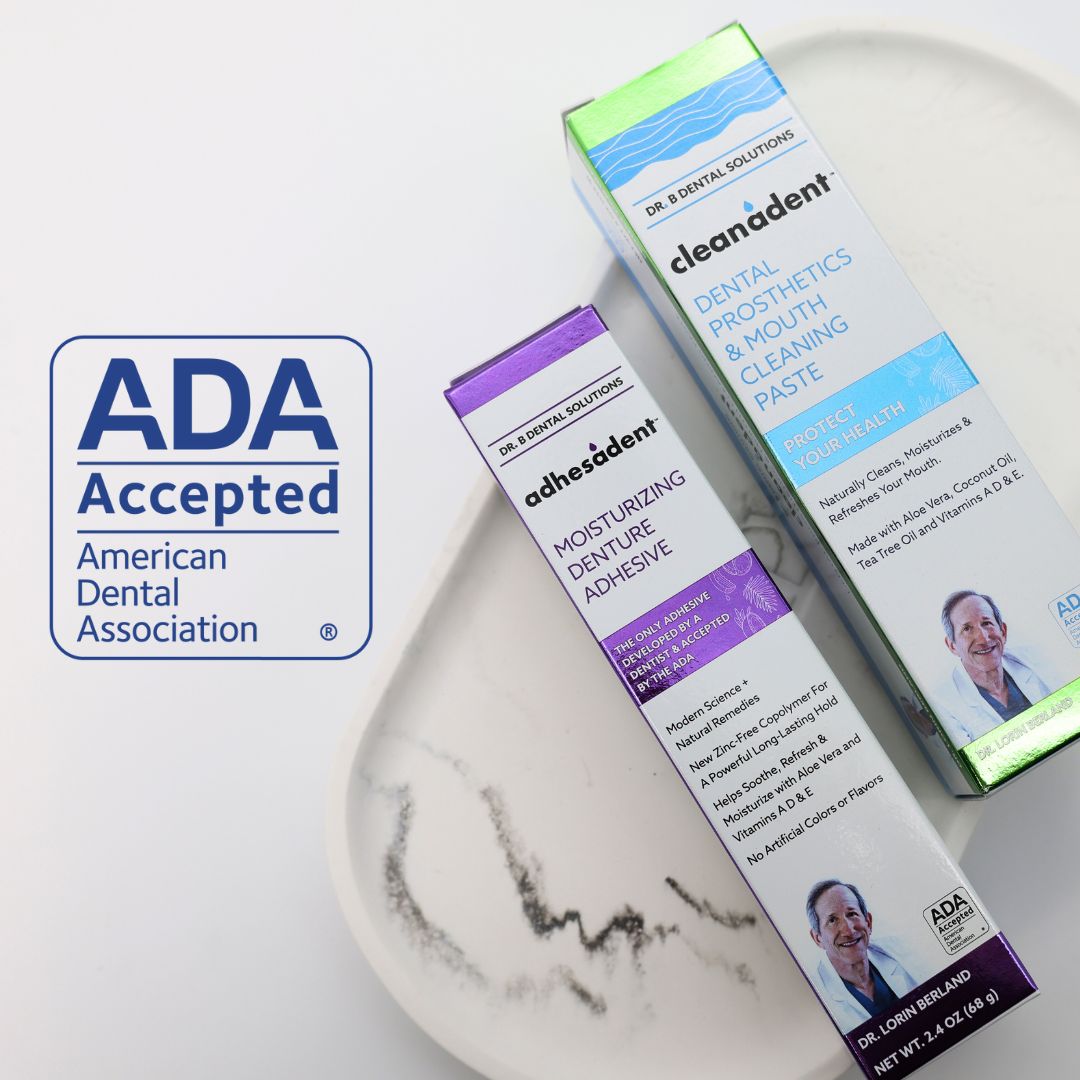 Dr. B Dental Solutions was founded by cosmetic dentist Dr. Lorin Berland to solve the real issues denture wearers face—dry mouth, soreness, adhesive residue, and infections. Each product targets a specific problem with natural, science-backed ingredients. It’s better denture care, backed by dentists.